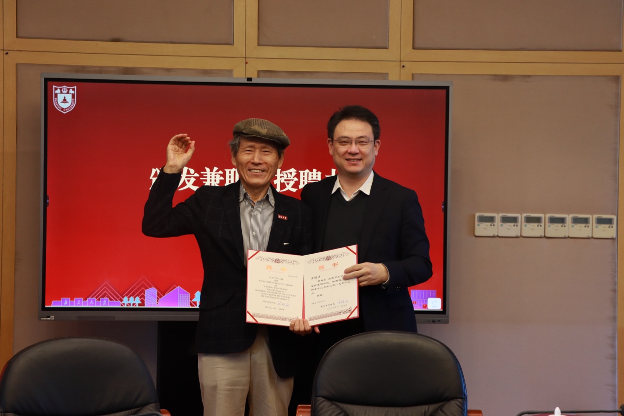 鉴于其卓越的学术成就,韩相震被聘为中国P站 兼职教授,索文斌为韩相震颁发聘书,并为其佩戴校徽。