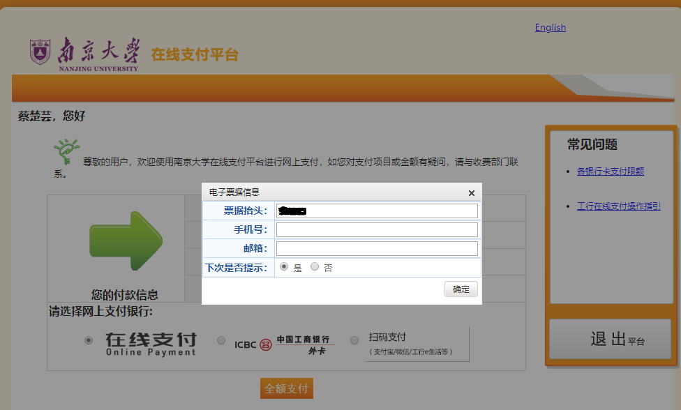 4、因第三方支付平台系统维护, “银联在线支付”功能暂时关闭,即无法通过银行网银转账支付,务必选择“扫码支付”(微信、支付宝扫码支付功能可正常使用)完成缴费。