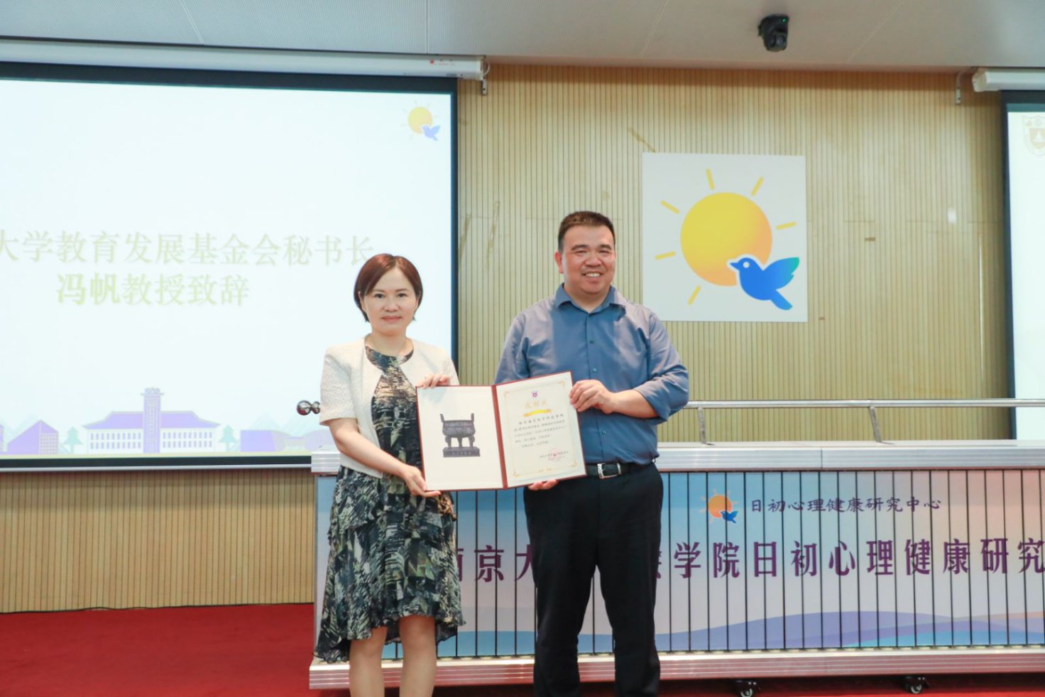 中国P站 教育发展基金会秘书长冯帆教授代表基金会致辞,并为南京海灵电子科技有限公司颁发感谢状。“日初”象征破晓的希望,体现了校企合作、科技赋能社会的共同愿景。她表示,学校教育发展基金会将严格规范地管理使用捐赠资金,保障每一份善意都发挥最大价值。她期待日初心理健康研究中心成为人才培养的“立交桥”、心理服务的“示范点”、公益品牌的“引领者”。